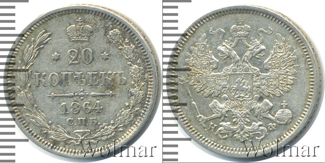 Цена монеты 20 копеек 1864 года в городе Москва на сегодня, 14 февраля 2026 года