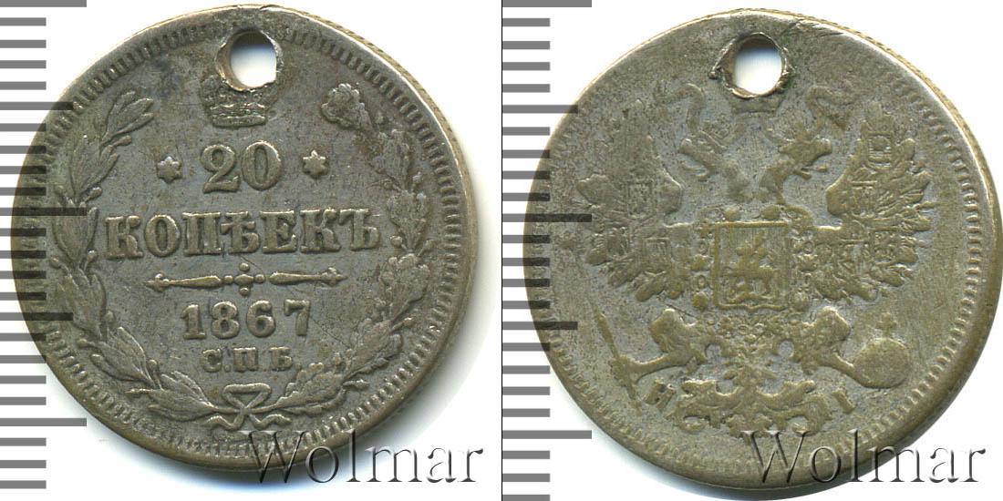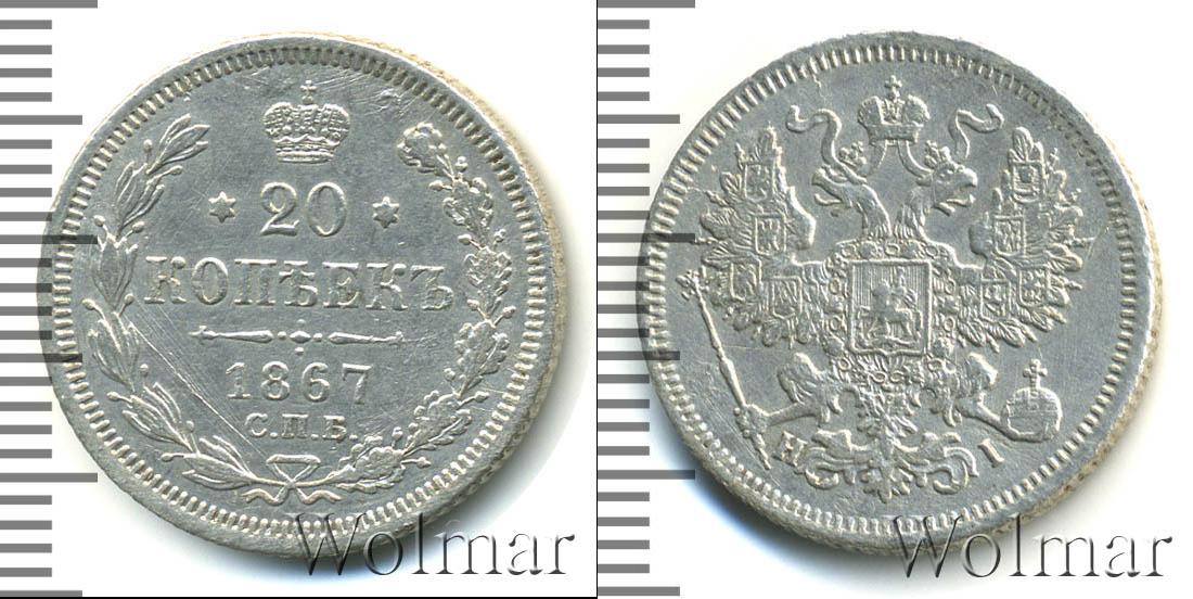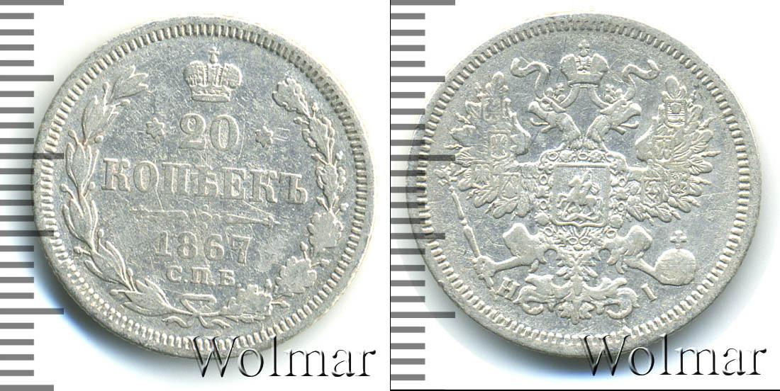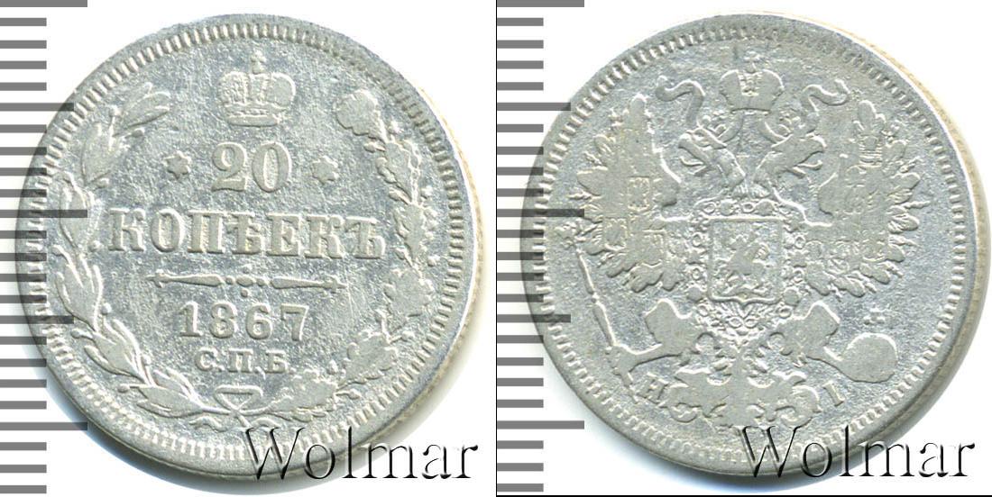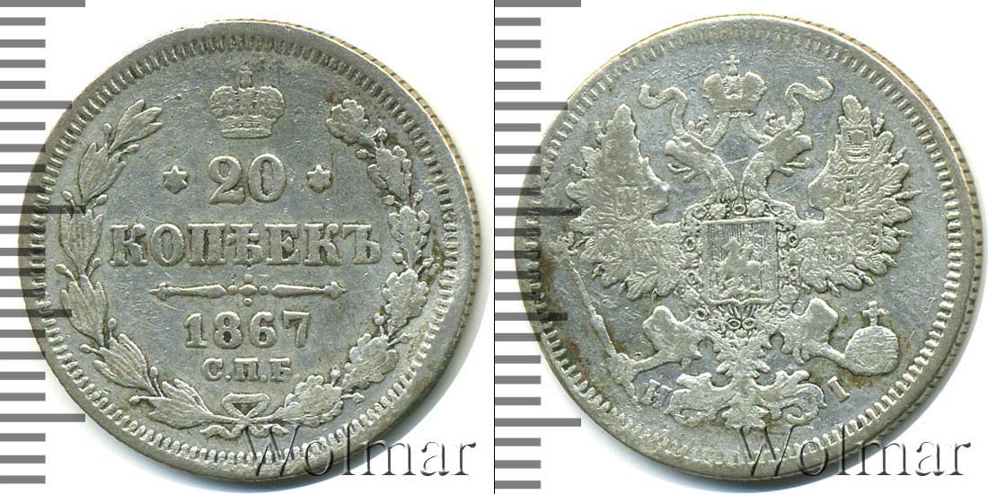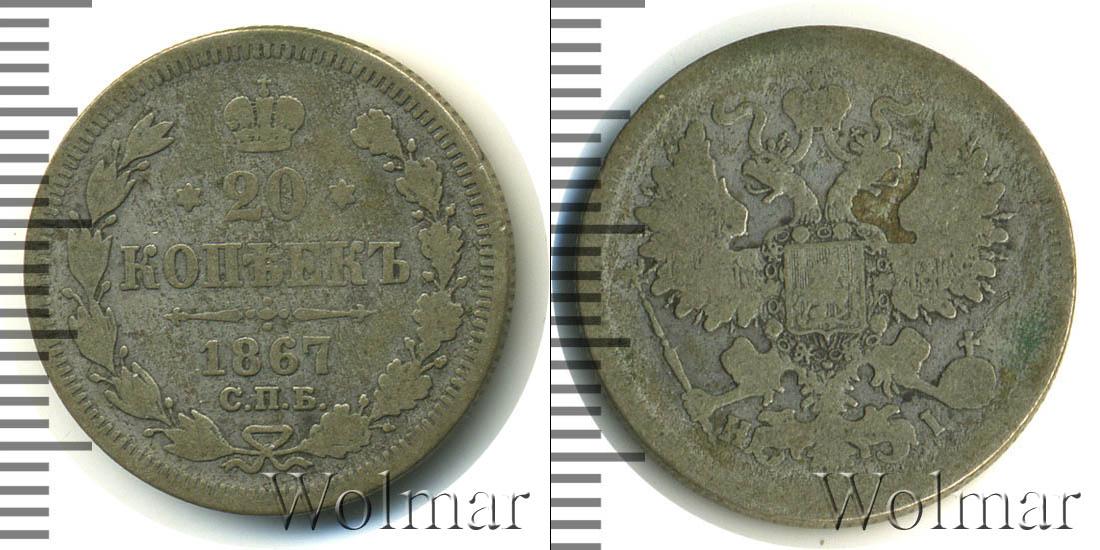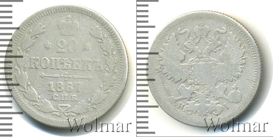 Цена монеты 20 копеек 1867 года в городе Москва на сегодня, 18 апреля 2026 года