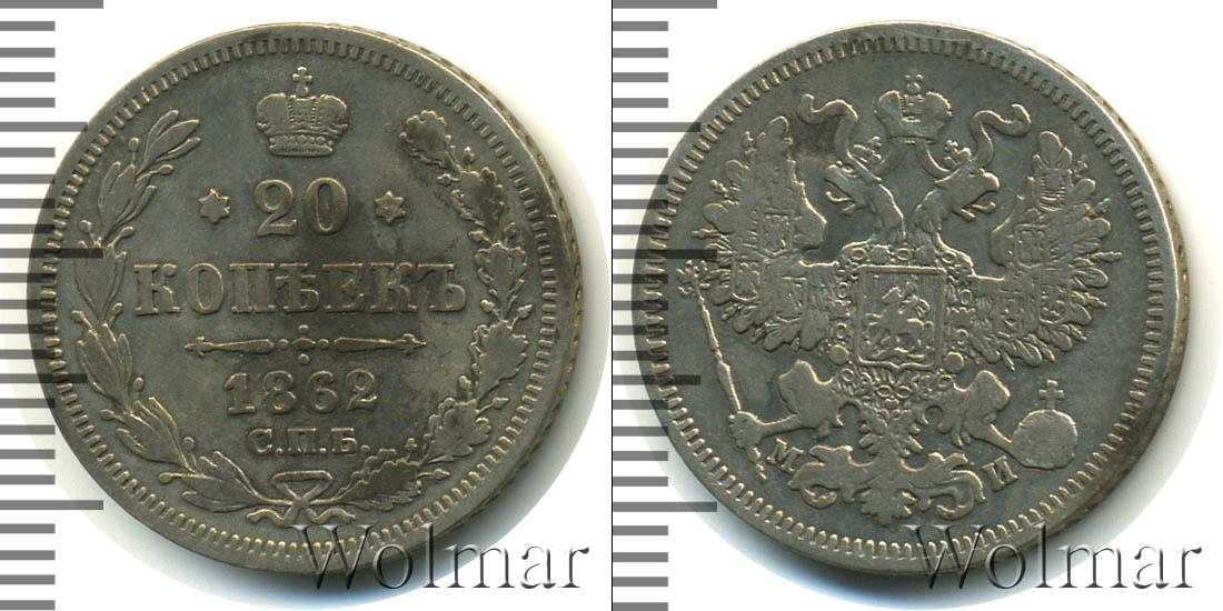Санкт-Петербургский монетный двор. Биткин №# 881.175, тираж 19 500 004, Уздеников №# 1809. По каталогу Wolmar # 124/11. 20 копеек СПБ МИ