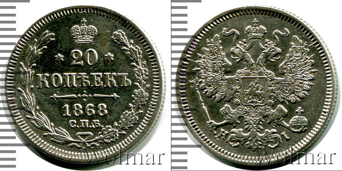 Санкт-Петербургский монетный двор. Биткин №# 883.216, тираж 11 975 003, Уздеников №# 1858. По каталогу Wolmar # 124/19. 20 копеек СПБ НI