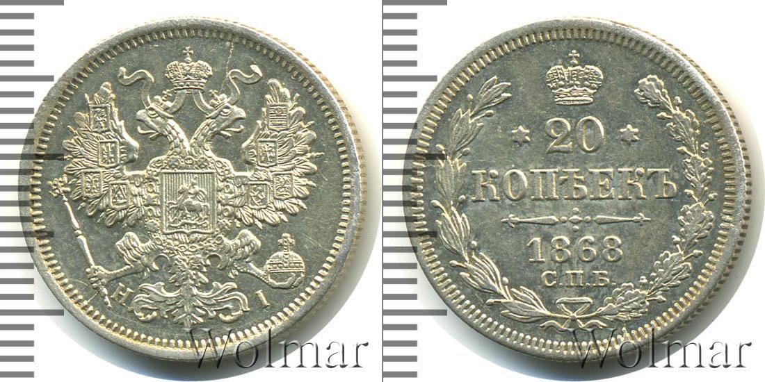 Штемпельный блеск. Легкая патина. Санкт-Петербургский монетный двор. Биткин №# 883.216, тираж 11 975 003, Уздеников №# 1858. По каталогу Wolmar # 124/19. 20 копеек СПБ НI