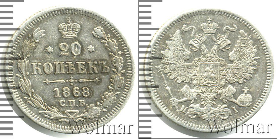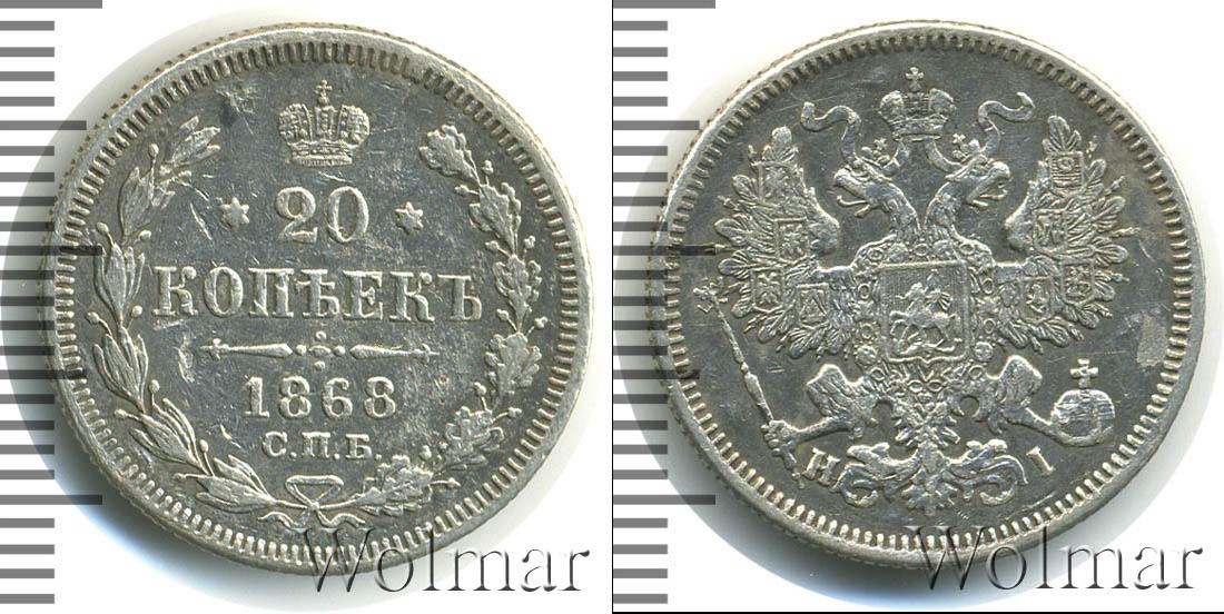 Санкт-Петербургский монетный двор. Биткин №# 883.216, тираж 11 975 003, Уздеников №# 1858. По каталогу Wolmar # 124/19. 20 копеек СПБ НI