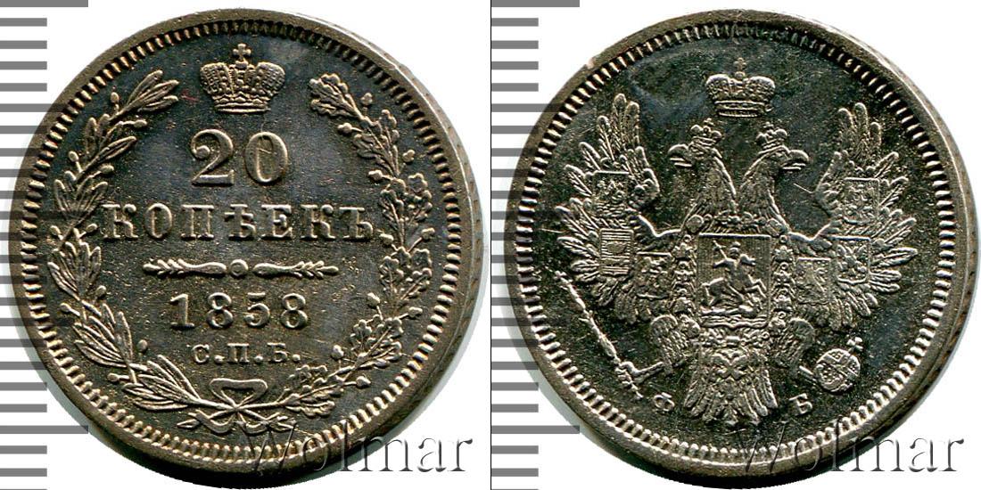 Цена монеты 20 копеек 1858 года в городе Москва на сегодня, 14 февраля 2026 года