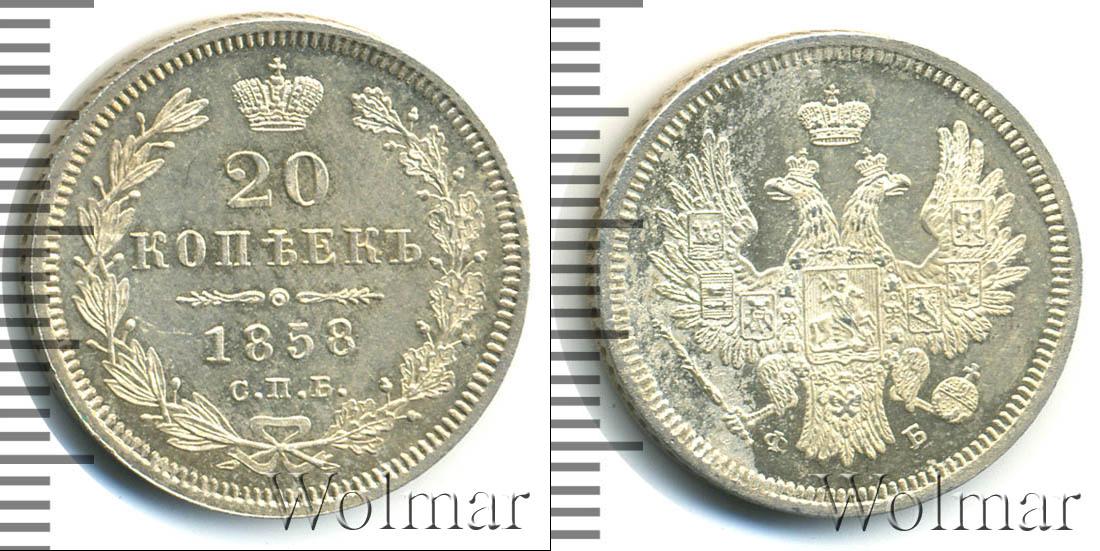 Царапины между "К" и "О". Санкт-Петербургский монетный двор. Биткин №# 877.61, тираж 4 150 006, Уздеников №# 1749. По каталогу Wolmar # 123/35. 20 копеек СПБ ФБ