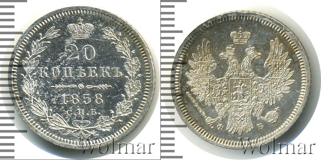 Глубокое зеркальное поле! Коррозия. Санкт-Петербургский монетный двор. Биткин №# 877.61, тираж 4 150 006, Уздеников №# 1749. По каталогу Wolmar # 123/35. 20 копеек СПБ ФБ