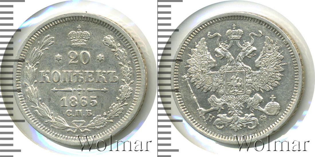 Цена монеты 20 копеек 1865 года в городе Москва на сегодня, 14 февраля 2026 года