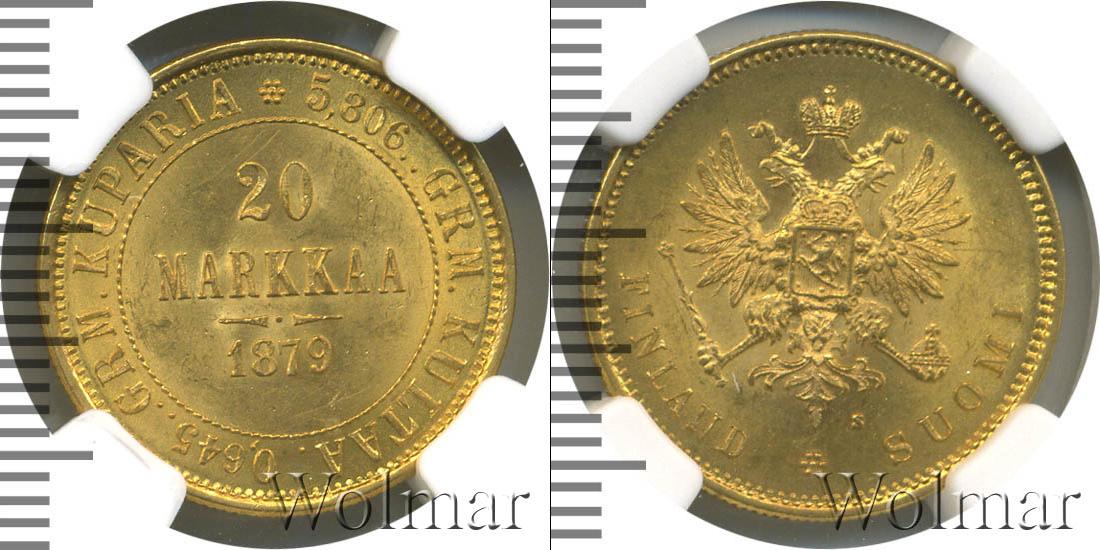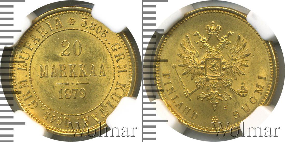 В слабе NGC. Гельсингфорсский монетный двор. Биткин №# 908.612, тираж 300 000, Уздеников редкость - "черта" №# 4715. Нормативная проба - Au`900, нормативный вес - 6,45 гр, чистого золота - 5,81гр; По каталогу Wolmar # 446/2. 20 марок. Финляндия S