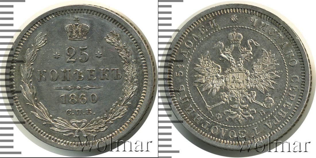 Цена монеты 25 копеек 1860 года в городе Москва на сегодня, 26 октября 2025 года