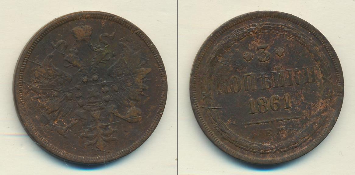 Коррозия, чистка, пятна 3 копейки ЕМ