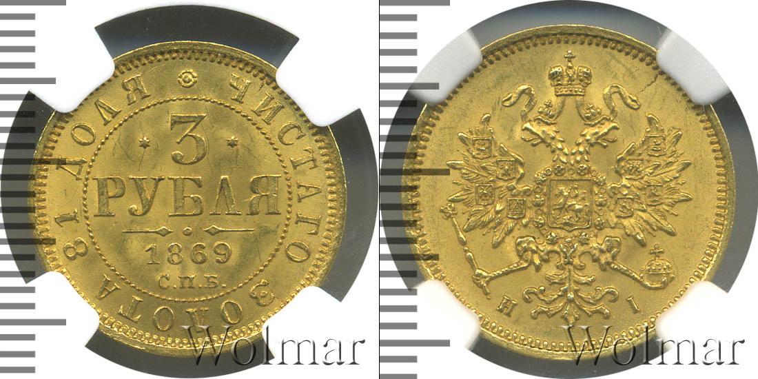 Цена монеты 3 рубля 1869 года в городе Москва на сегодня, 17 марта 2026 года