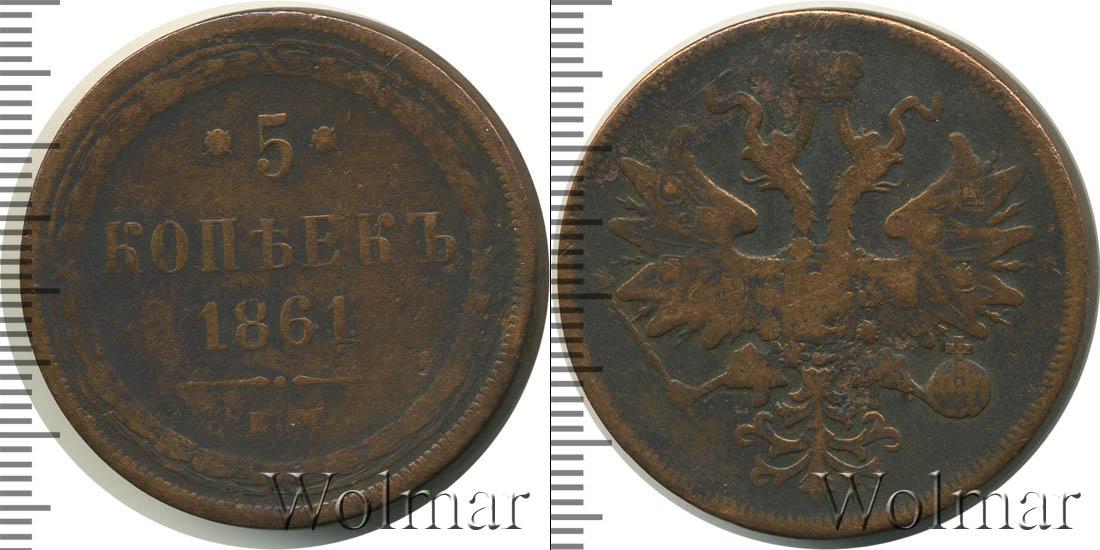 Цена монеты 5 копеек 1861 года в городе Москва на сегодня, 23 марта 2026 года