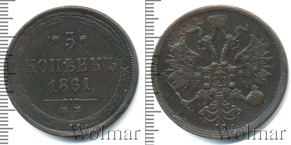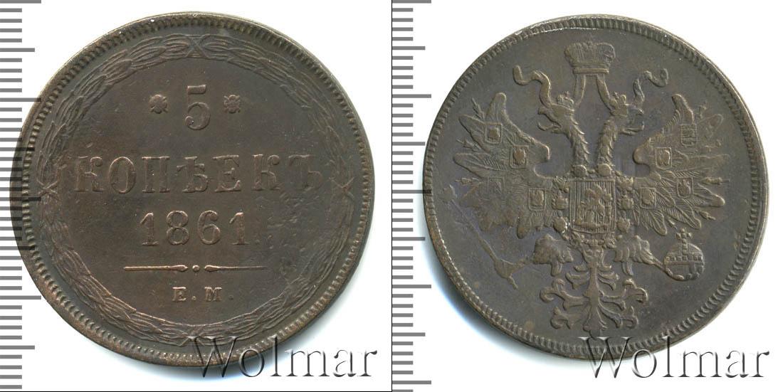 Екатеринбургский монетный двор. Биткин №# 888.307-308, тираж 28 021 760, Уздеников №# 3620. По каталогу Wolmar # 159/17. 5 копеек ЕМ