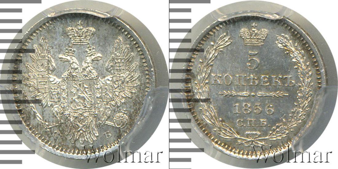 В слабе PCGS. Санкт-Петербургский монетный двор. Биткин №# 877.67, тираж 680 003, Узденников №# 1733. По каталогу Wolmar # 146/31. 5 копеек СПБ ФБ