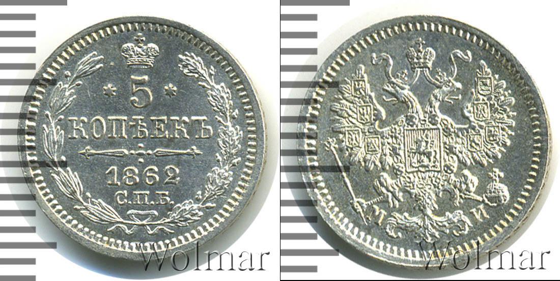 Санкт-Петербургский монетный двор. Биткин №# 883.208, тираж 400 009, Узденников №# 1812, Петров - 1 рубль. По каталогу Wolmar # 147/8. 5 копеек СПБ МИ