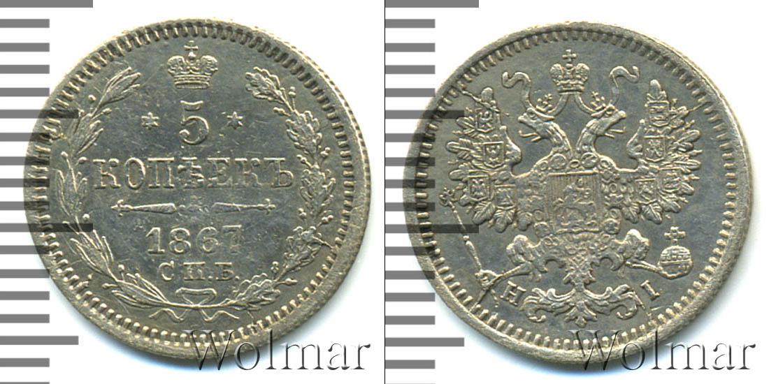 Цена монеты 5 копеек 1867 года в городе Москва на сегодня, 15 марта 2026 года