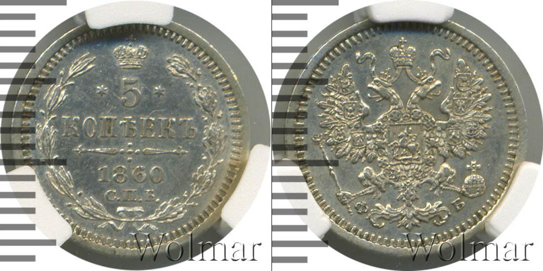 В слабе HHP. Санкт-Петербургский монетный двор. Биткин №# 883.205, тираж 180 003, Узденников №# 1783. По каталогу Wolmar # 147/5. 5 копеек СПБ ФБ