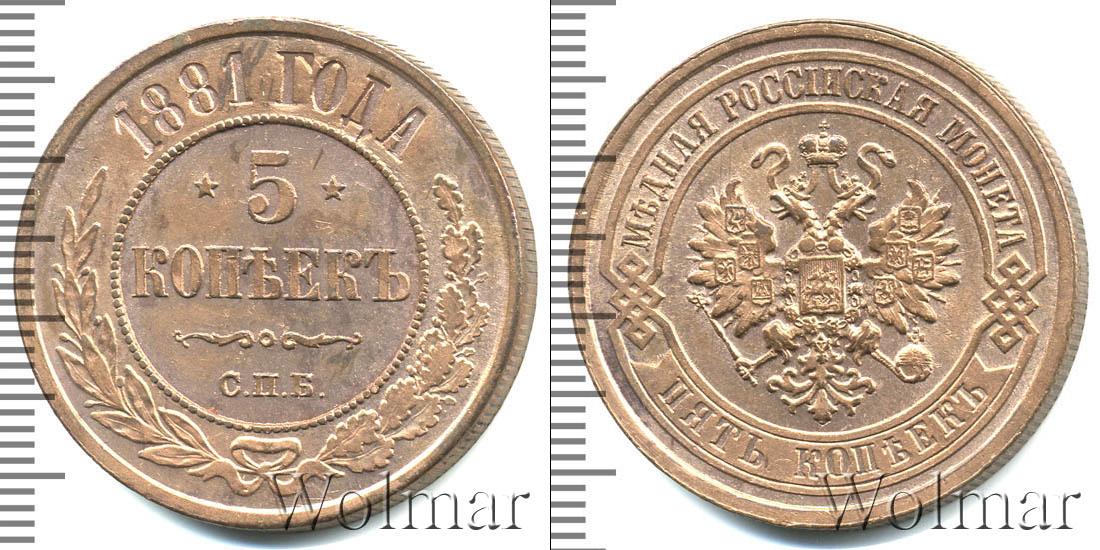 Цена монеты 5 копеек 1881 года в городе Москва на сегодня, 01 апреля 2026 года