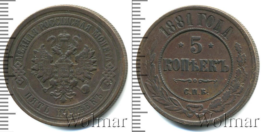 Цена монеты 5 копеек 1881 года в городе Москва на сегодня, 01 апреля 2026 года