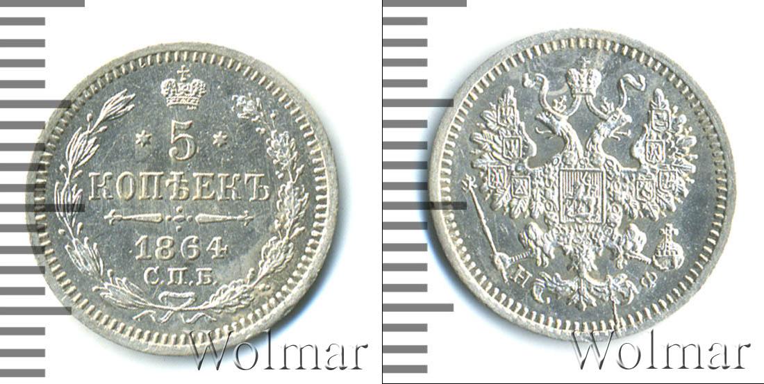 В слабе HHP. Следы коррозии. Санкт-Петербургский монетный двор. Биткин №# 883.210, тираж 240 003, Узденников №# 1826. По каталогу Wolmar # 147/10. 5 копеек СПБ НФ