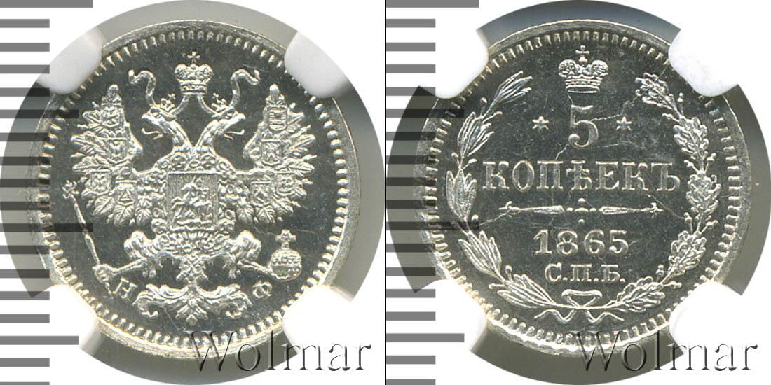 В слабе PCGS. Санкт-Петербургский монетный двор. Биткин №# 883.211, тираж 190 003, Узденников №# 1833. По каталогу Wolmar # 147/11. 5 копеек СПБ НФ