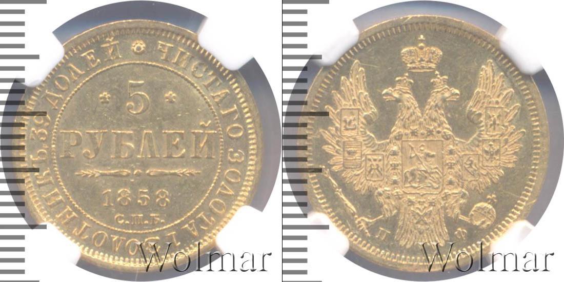 Крайне редкий год, особенно в подобной отличной сохранности!!! В слабе NGC. Санкт-Петербургский монетный двор. Биткин №# 874.4, тираж 3 500 005. Нормативная проба - Au`917, нормативный вес - 6,54 гр, чистого золота - 6,00 гр. Wolmar # 18/32. 5 рублей