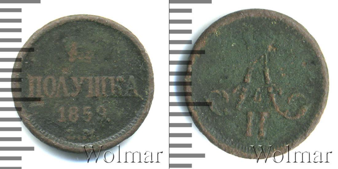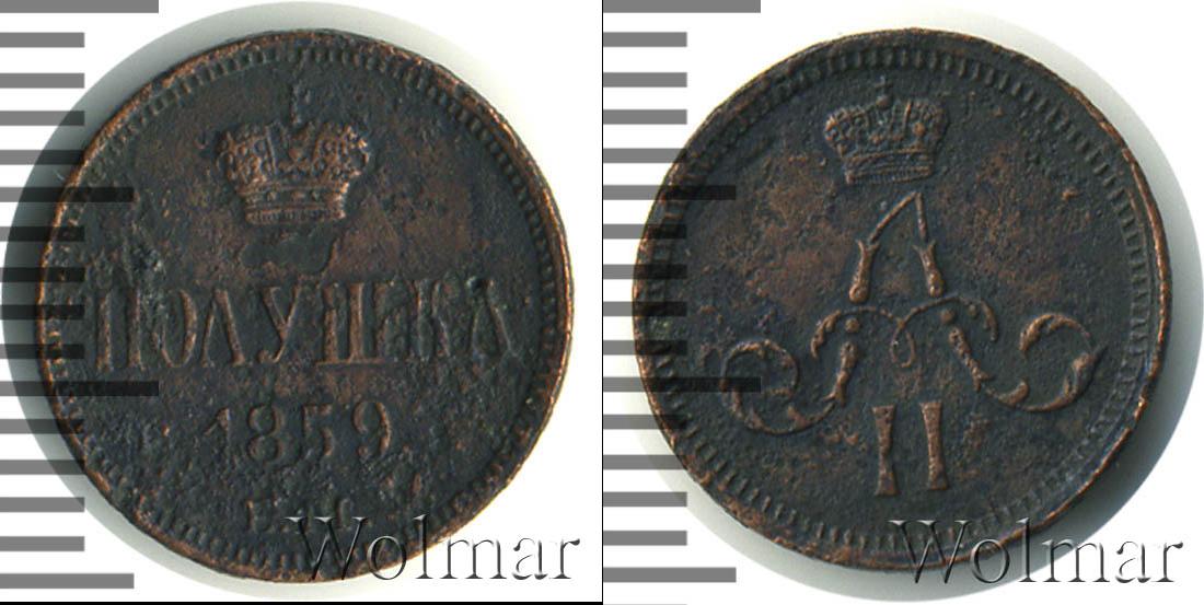 Екатеринбургский монетный двор. Биткин №# 892.383, тираж 3 833 600, Уздеников №# 3605, монета образца 1860 г. Wolmar # 213/14. Полушка ЕМ