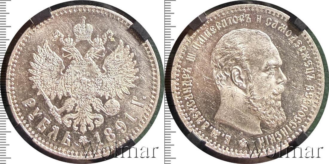 В слабе RNGA. Санкт-Петербургский монетный двор. Биткин №# 919.74, "портрет образца 1888-1891", тираж 1 117 018, Уздеников №# 2041. По каталогу Wolmar # 77/8. 1 рубль АГ
