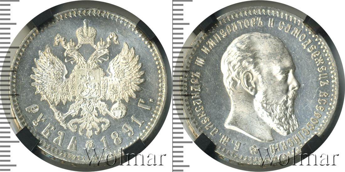 В слабе NGC. Санкт-Петербургский монетный двор. Биткин №# 919.74, "портрет образца 1888-1891", тираж 1 117 018, Уздеников №# 2041. По каталогу Wolmar # 77/8. 1 рубль АГ