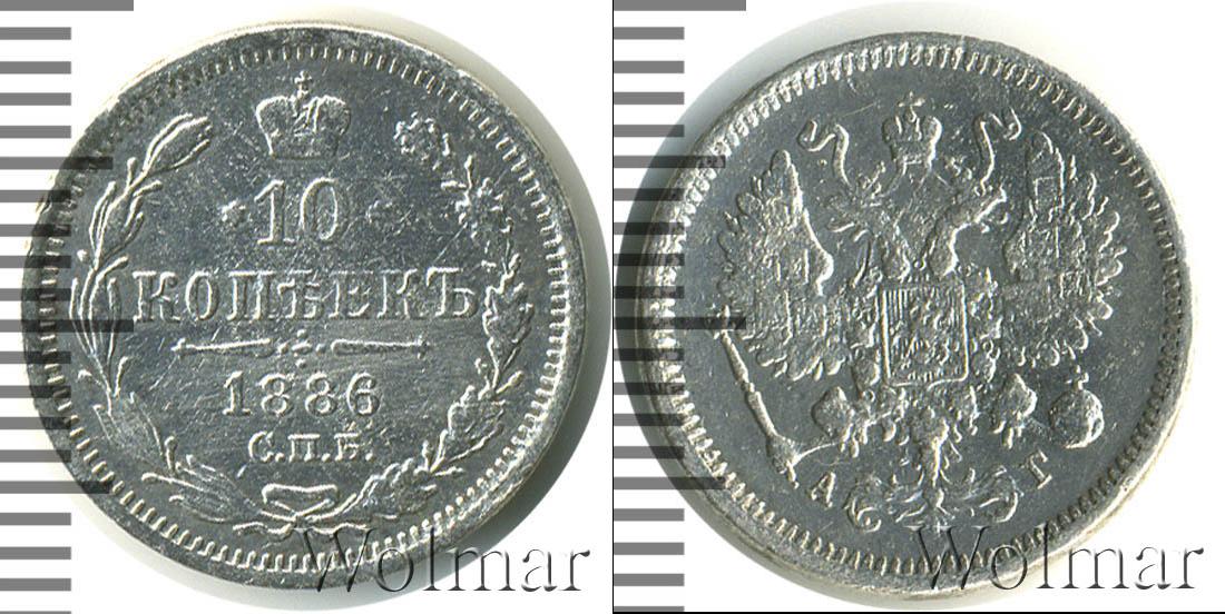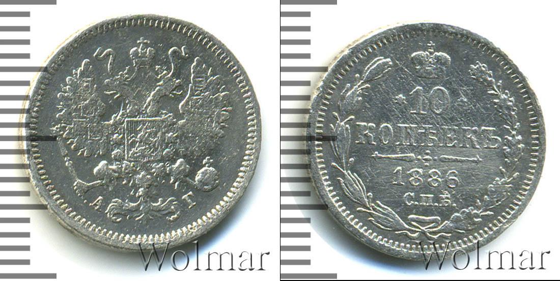 Цена монеты 10 копеек 1886 года Серебро в городе Москва на сегодня, 12 марта 2026 года