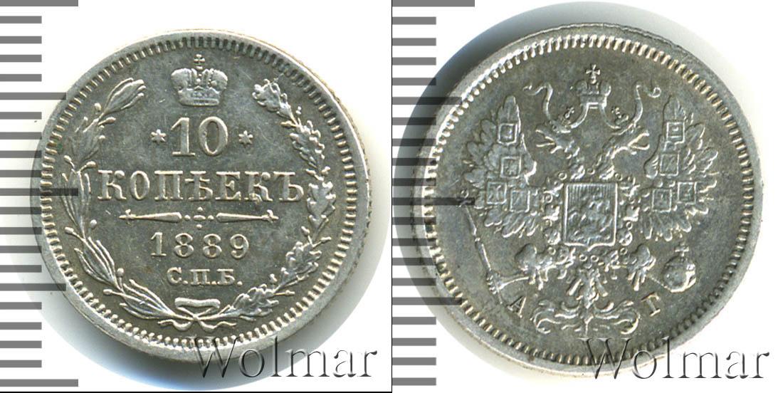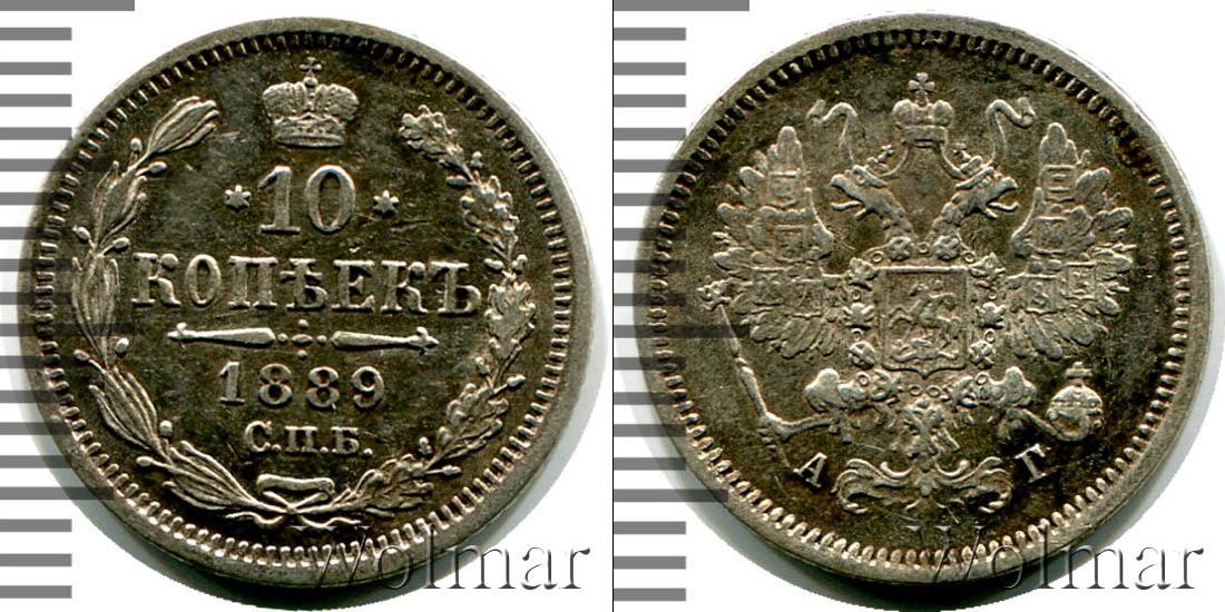 Цена монеты 10 копеек 1889 года Серебро в городе Москва на сегодня, 12 марта 2026 года