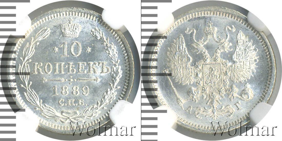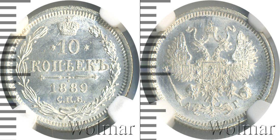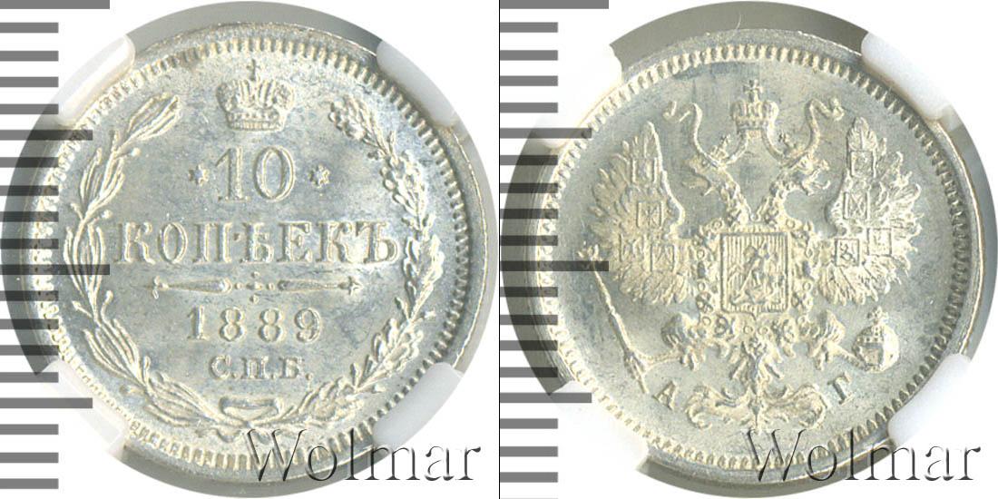 В слабе NGC. Санкт-Петербургский монетный двор. Биткин №# 922.135, тираж 5 000 002, Уздеников №# 2032. По каталогу Wolmar # 139/40. 10 копеек СПБ АГ |