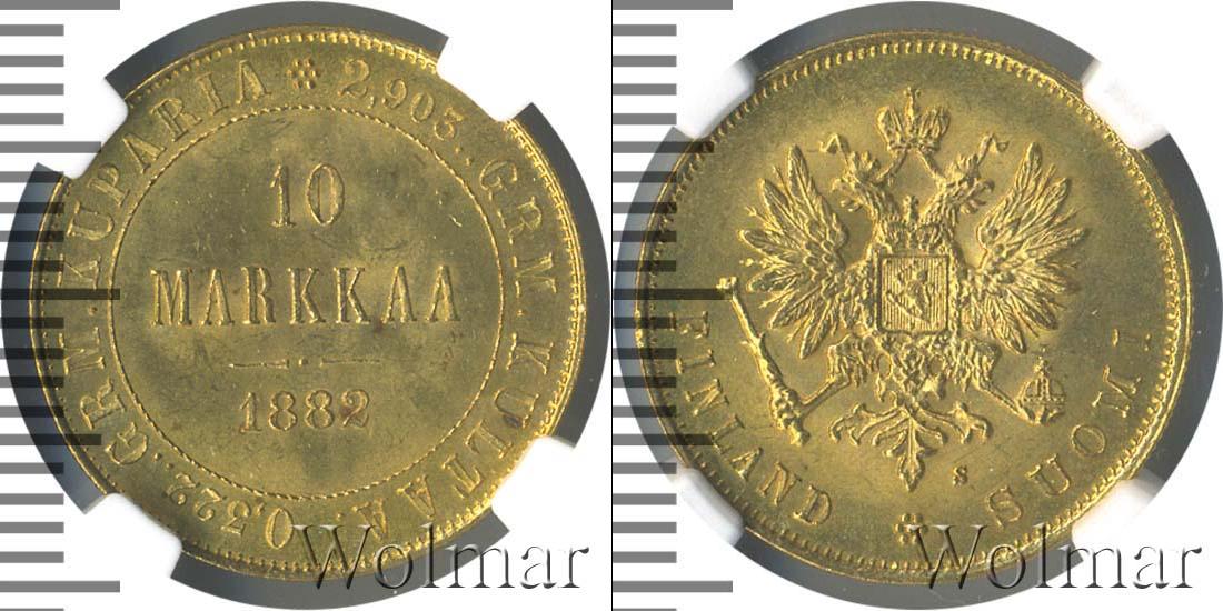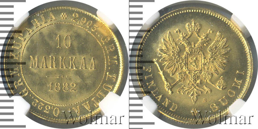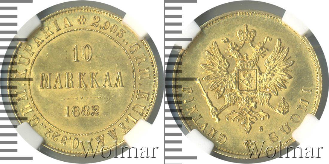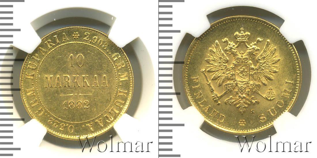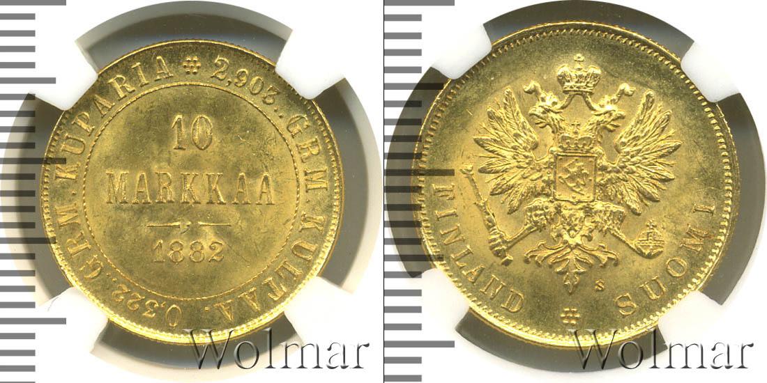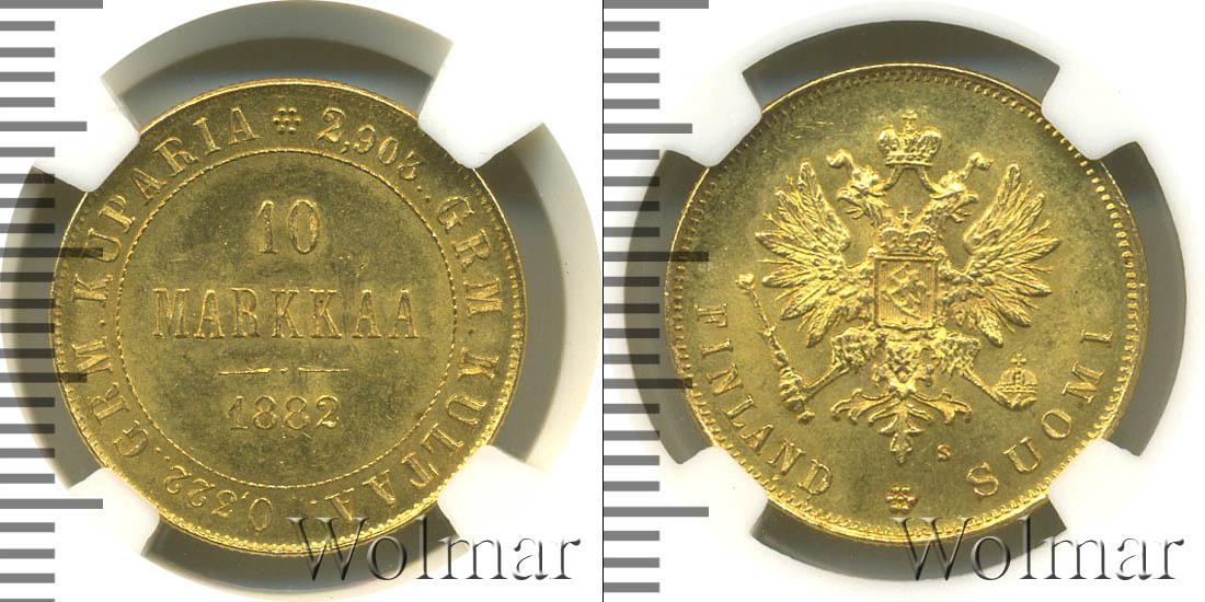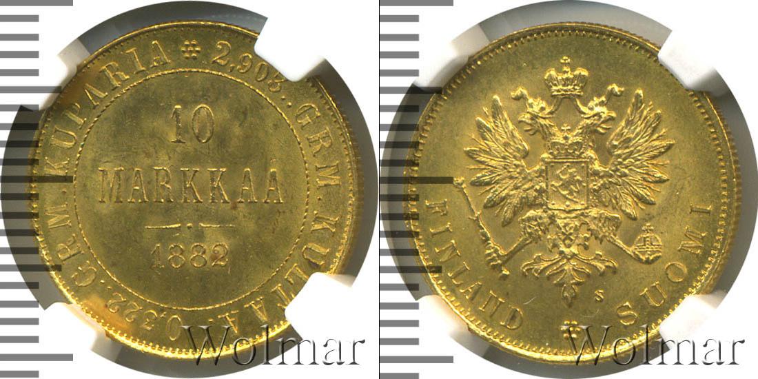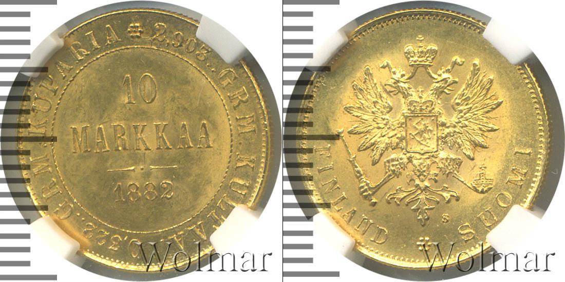 В слабе NGC. Гельсингфорсский монетный двор. Биткин №# 929.229, тираж 386 040, Уздеников редкость - "черта", №# 4720. Нормативная проба - Au`900, нормативный вес - 3,23 гр, чистого золота - 2,91гр; По каталогу Wolmar # 447/4. 10 марок. Финляндия S