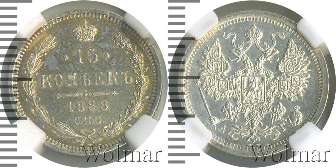 В слабе PCGS. Санкт-Петербургский монетный двор. Биткин редкость - R, №# 921.121, тираж неизвестен, Уздеников №# 2024. По каталогу Wolmar # 127/37. 15 копеек R СПБ АГ