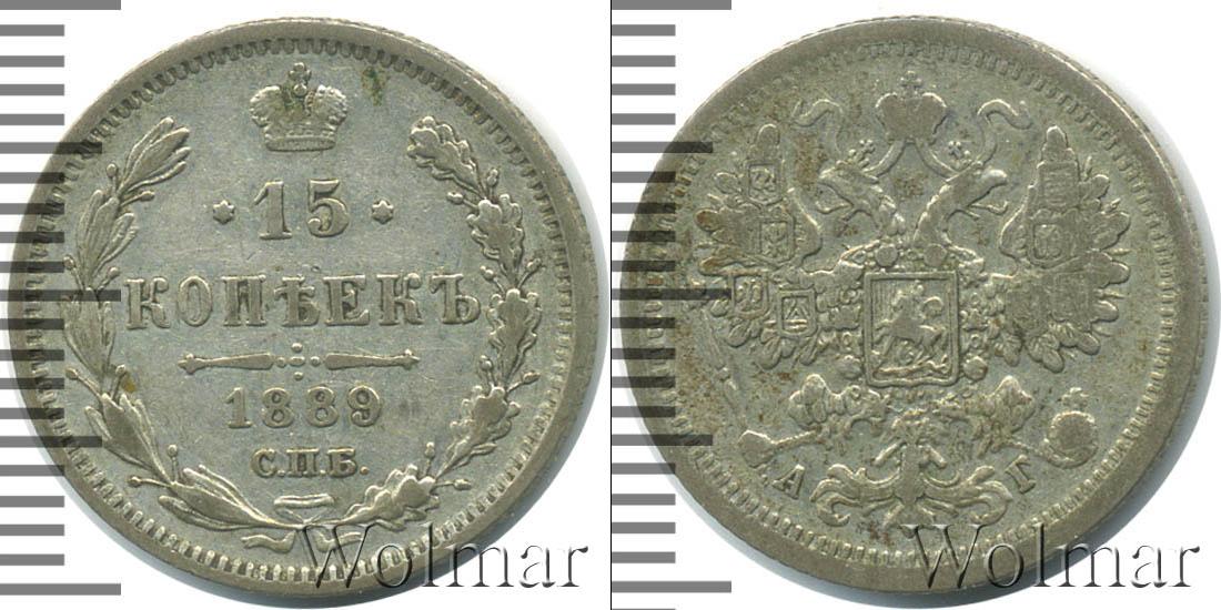 Санкт-Петербургский монетный двор. Биткин №# 921.122, тираж 2 835 062 ,Уздеников №# 2031. По каталогу Wolmar # 127/38. 15 копеек СПБ АГ