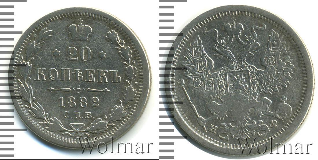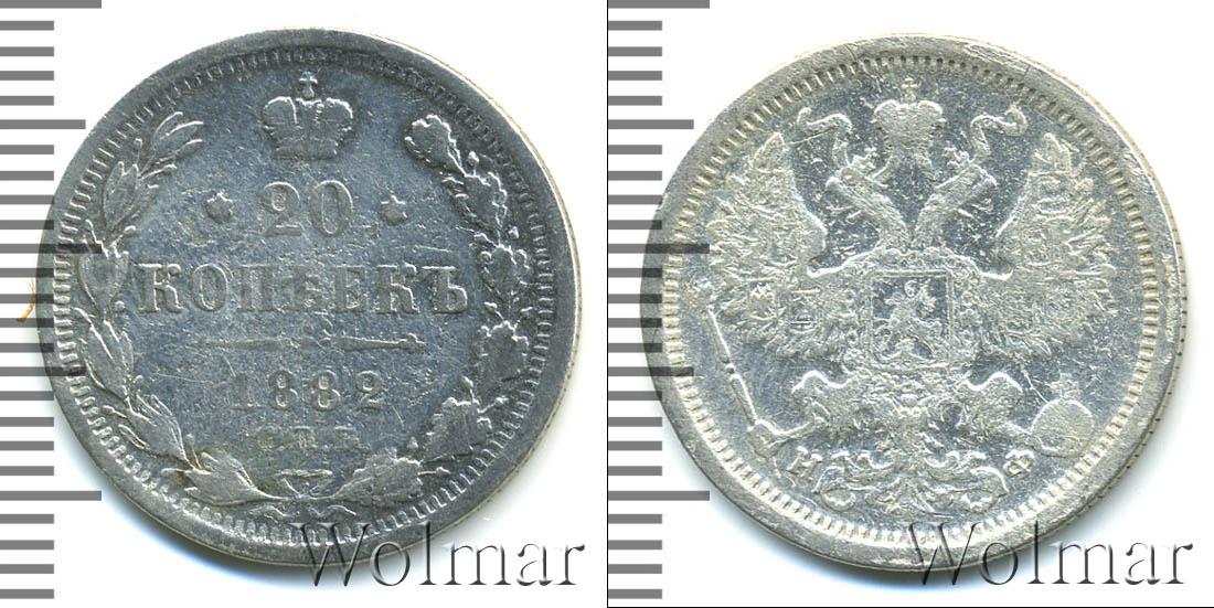 Цена монеты 20 копеек 1882 года Серебро в городе Москва на сегодня, 21 февраля 2026 года