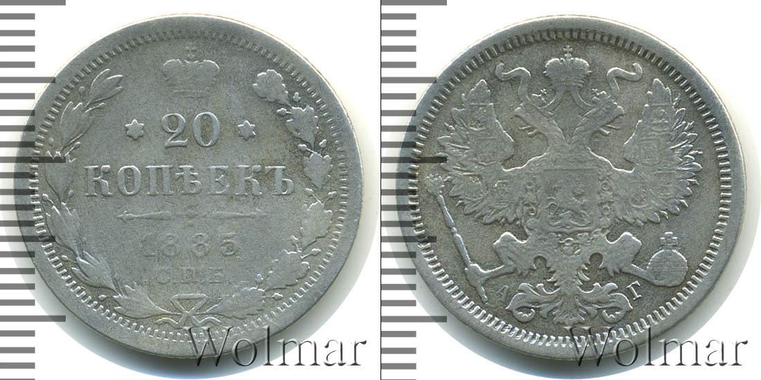 Санкт-Петербургский монетный двор. Биткин №# 921.104, тираж 1 610 010, Уздеников №# 1998. По каталогу Wolmar # 124/42. 20 копеек СПБ АГ