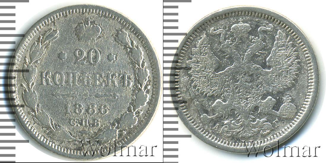 Санкт-Петербургский монетный двор. Биткин №# 921.105, тираж 2 625 107, Уздеников №# 2008. По каталогу Wolmar # 124/43. 20 копеек СПБ АГ