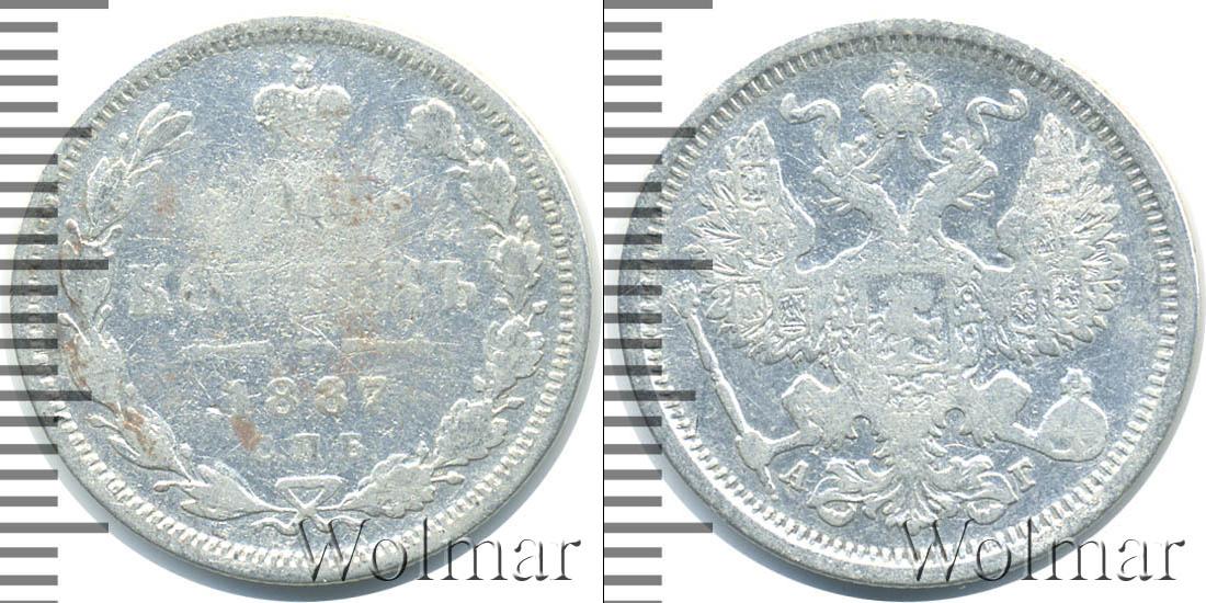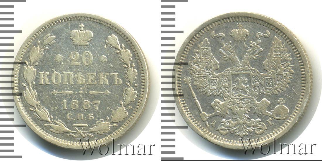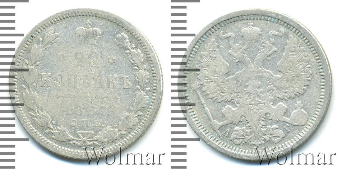 Санкт-Петербургский монетный двор. Биткин №# 921.106, тираж 2 500 004, Уздеников №# 2016. По каталогу Wolmar # 124/44. 20 копеек СПБ АГ