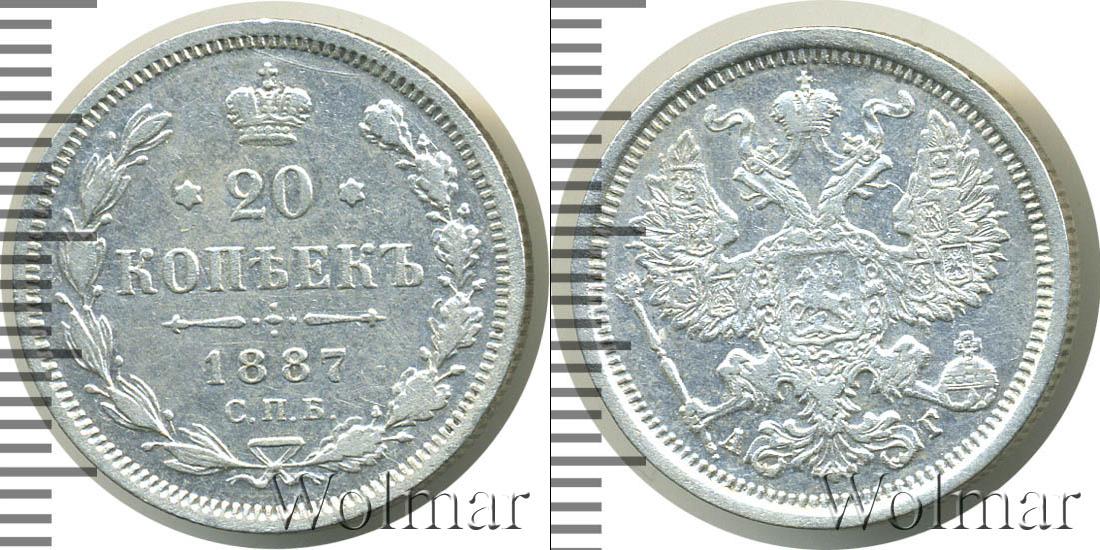 Санкт-Петербургский монетный двор. Биткин №# 921.106, тираж 2 500 004, Уздеников №# 2016. По каталогу Wolmar # 124/44. 20 копеек СПБ АГ