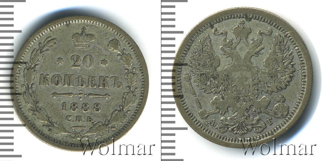Санкт-Петербургский монетный двор. Биткин №# 921.107, тираж 3 035 037, Уздеников №# 2023. По каталогу Wolmar # 124/45. 20 копеек СПБ АГ