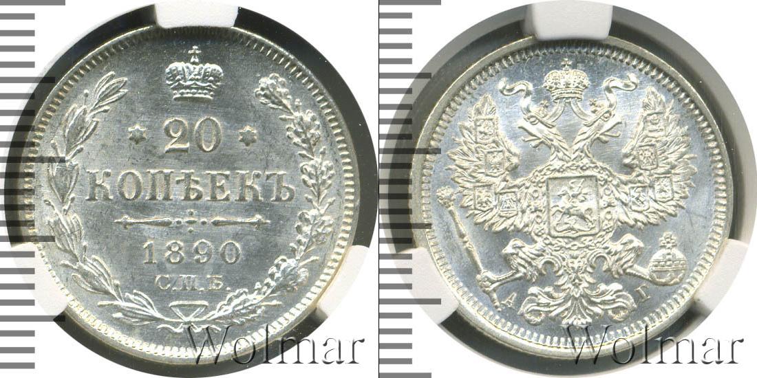В слабе NGC. Санкт-Петербургский монетный двор. Биткин №# 921.109, тираж 3 500 006, Уздеников №# 2037. По каталогу Wolmar # 124/47. 20 копеек СПБ АГ