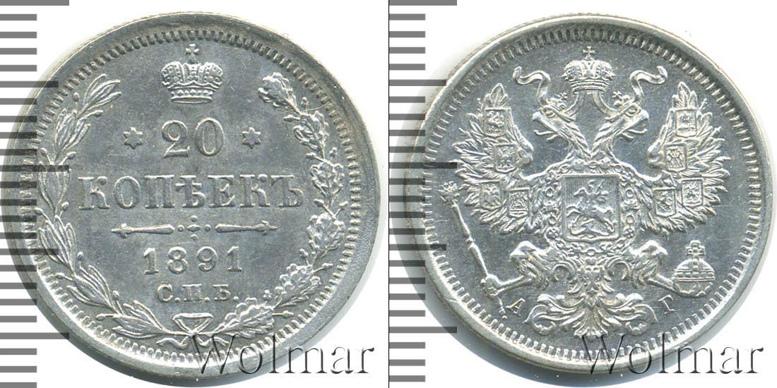 Санкт-Петербургский монетный двор. Биткин №# 921.110, тираж 6 105 008, Уздеников №# 2044. По каталогу Wolmar # 124/48. 20 копеек СПБ АГ