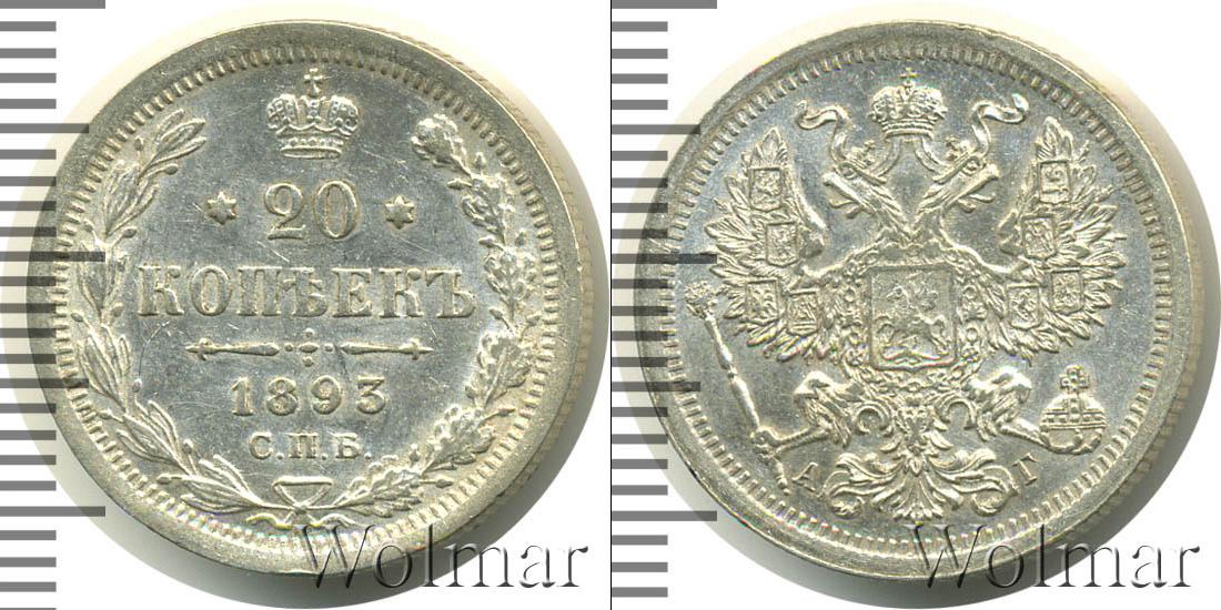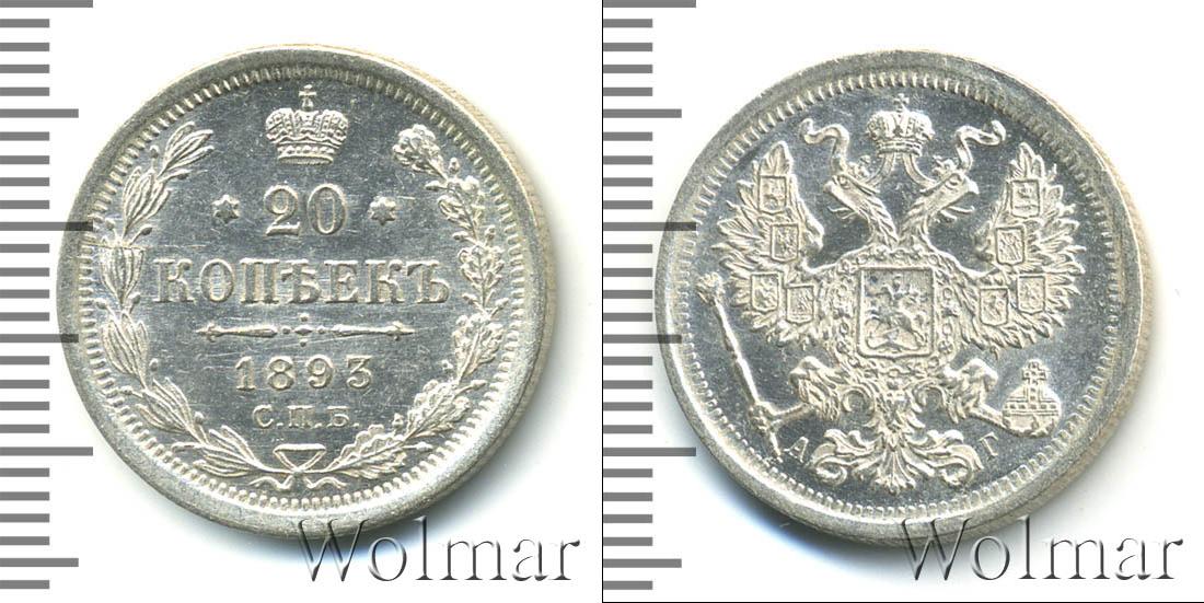 Цена монеты 20 копеек 1893 года Серебро в городе Москва на сегодня, 19 декабря 2025 года