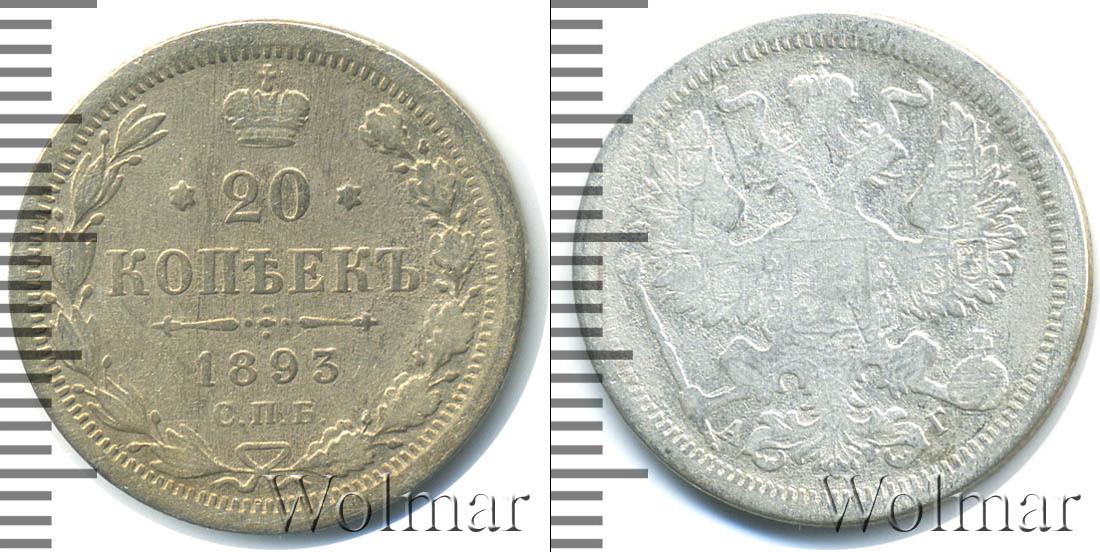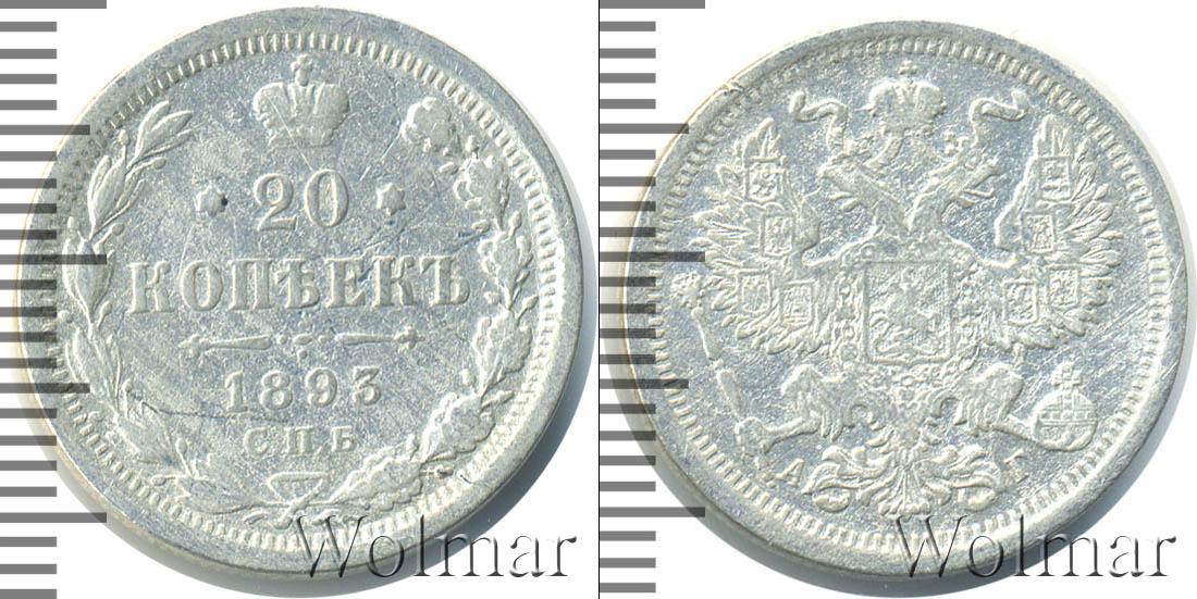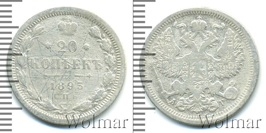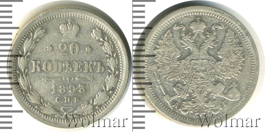 Санкт-Петербургский монетный двор. Биткин №# 921.111, тираж 2 500 008, Уздеников №# 2055. По каталогу Wolmar # 124/49. 20 копеек СПБ АГ