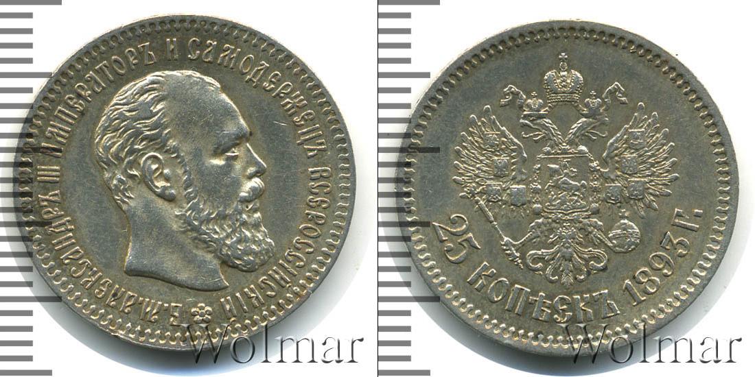 Цена монеты 25 копеек 1893 года Серебро в городе Москва на сегодня, 07 марта 2026 года
