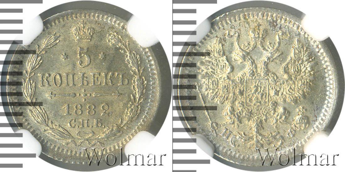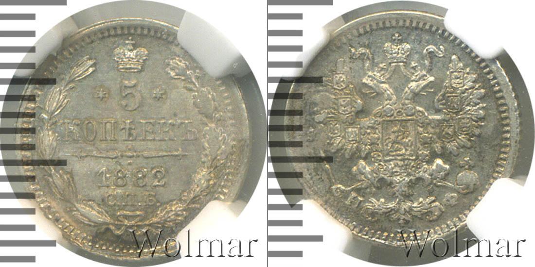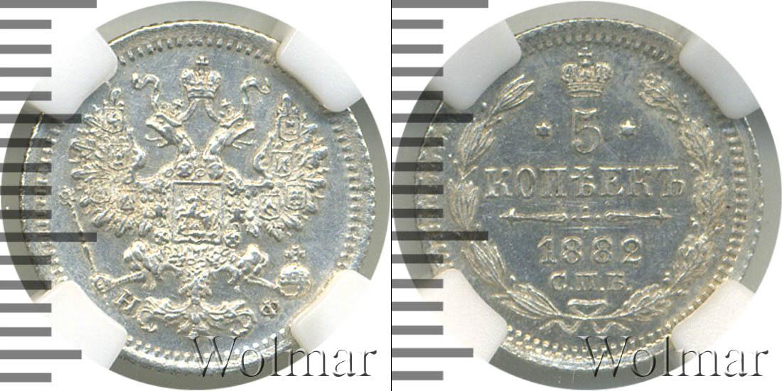 В слабе PCGS. Санкт-Петербургский монетный двор. Биткин №# 922.141, тираж 1 860 207,Узденников №# 1973. По каталогу Wolmar # 147/32. 5 копеек СПБ НФ