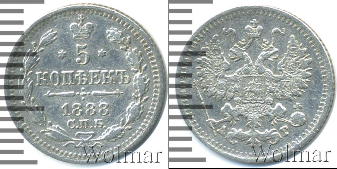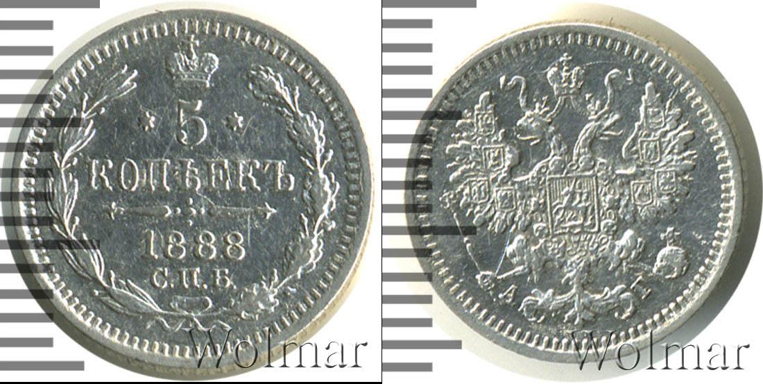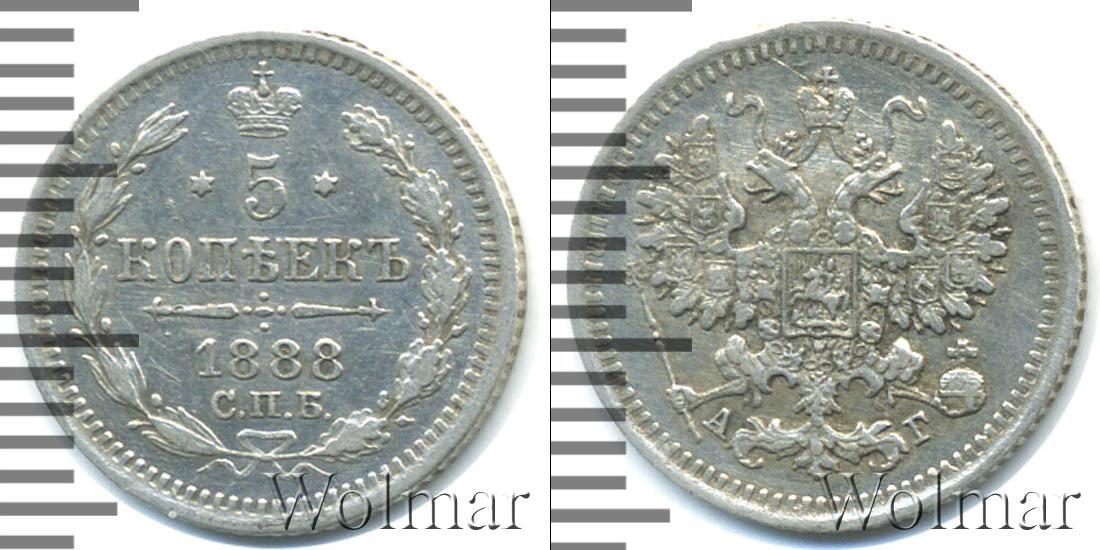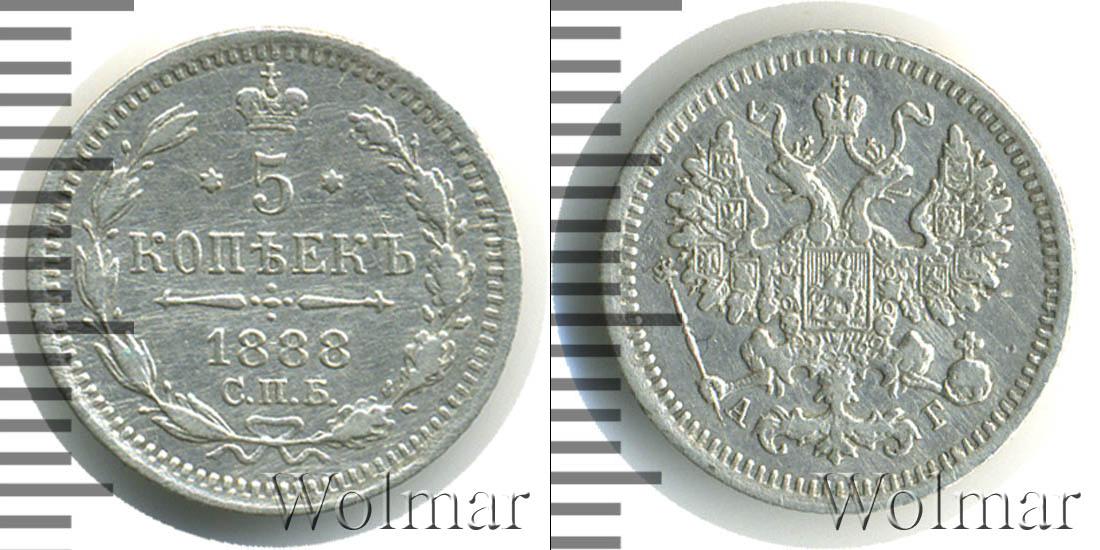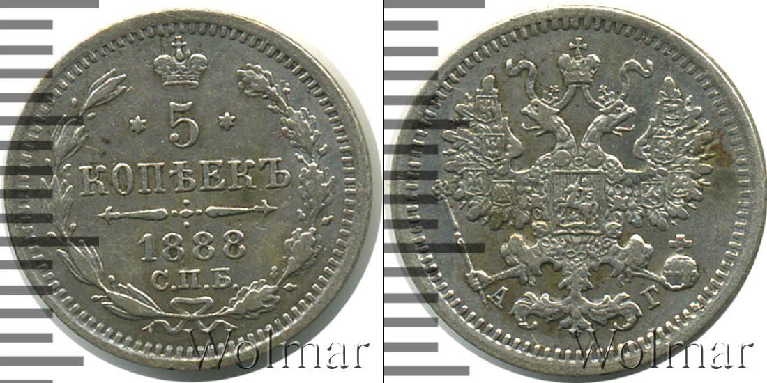 Санкт-Петербургский монетный двор. Биткин №# 922.148, тираж 4 000 047, Узденников №# 2026. По каталогу Wolmar # 147/39. 5 копеек СПБ АГ