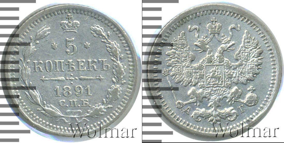 Санкт-Петербургский монетный двор. Биткин №# 922.151, тираж 2 000 008, Узденников №# 2047. По каталогу Wolmar # 147/42. 5 копеек СПБ АГ