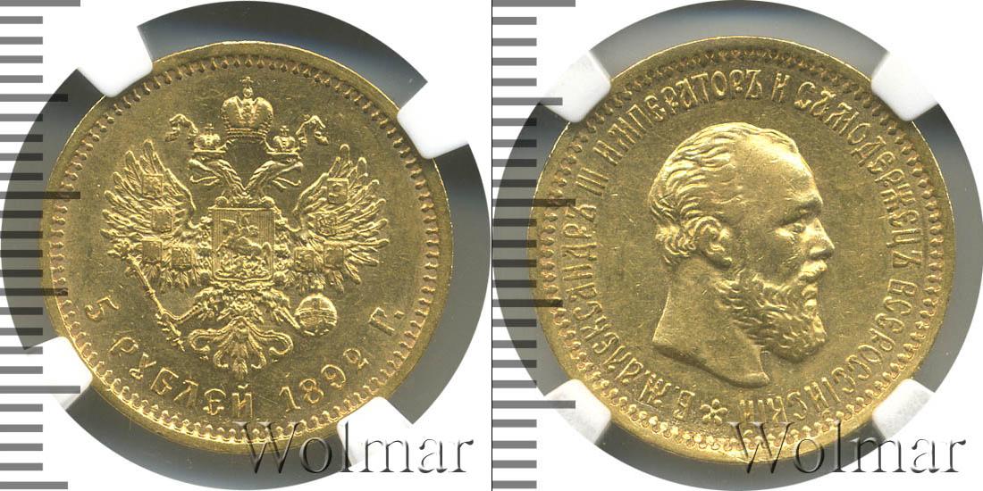 В слабе NGC. Санкт-Петербургский монетный двор. Биткин №# 917.37, тираж 128 006; Уздеников редкость - "черта", №# 0309. Нормативная проба - Au`900, нормативный вес - 6,45 гр, чистого золота - 5,81 гр. По каталогу Wolmar # 19/10. 5 рублей АГ