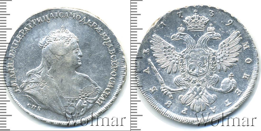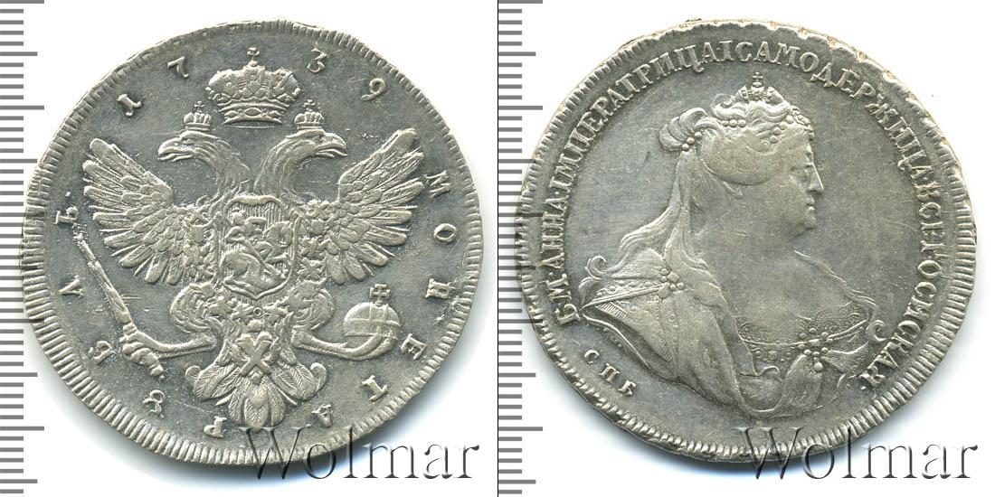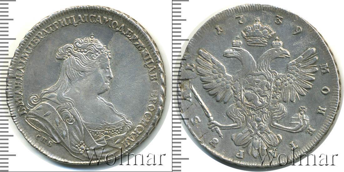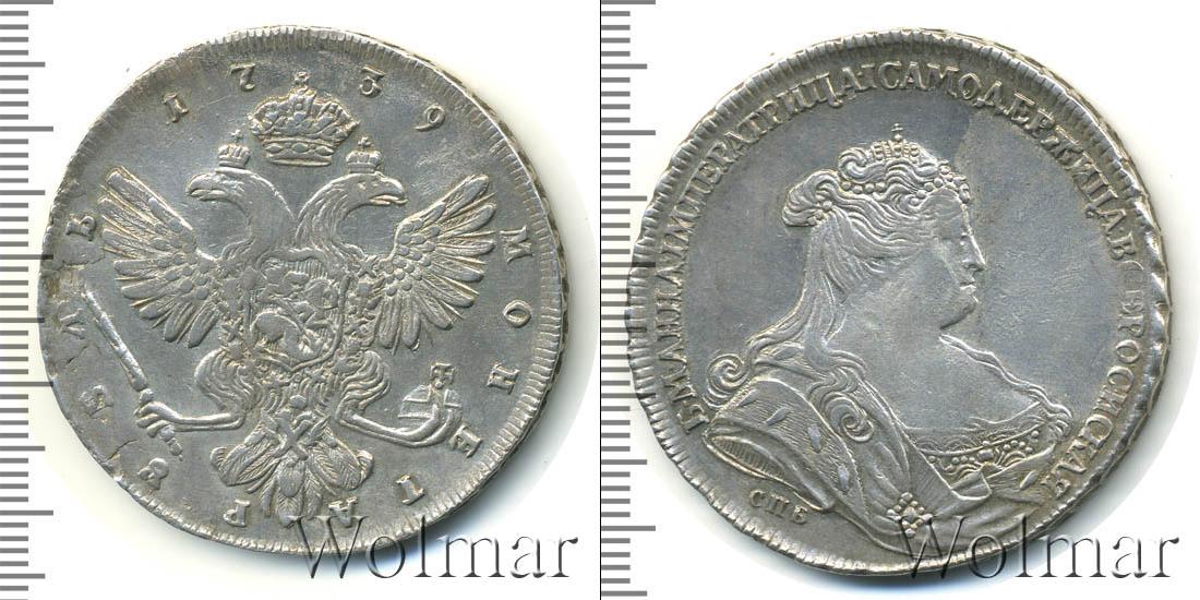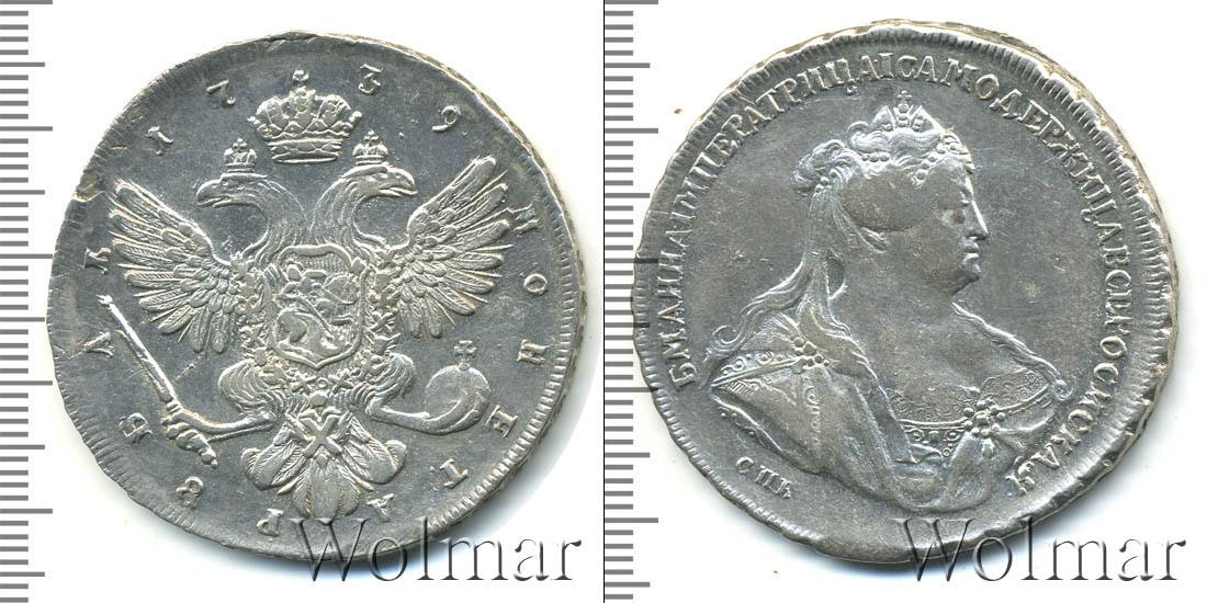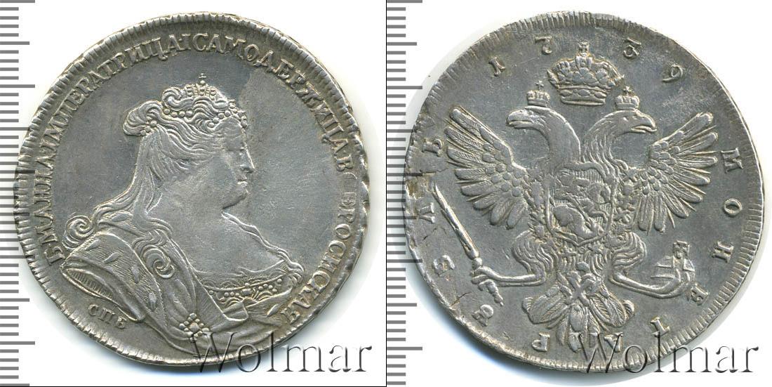 В центре диска изображен двуглавый орел со скипетром и державой, на груди герб Москвы с цепью Ордена Андрея Первозванного. Над гербом России сделана отметка о дате эмиссии монеты «1739» (чуть левее от центра). Внизу слева и справа выгравировано: «РУБЛЬ» и «МОНЕТА». По краю диска идет зубчатый ободок.